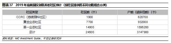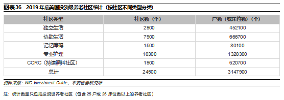 根据NIC(National Investment Center)测算,截至2019年底,美国共有2.45万个投资级养老社区(含有25个单元或床位以上的有年龄限制的地产)和护理设施,户数(或床位数)达310万。