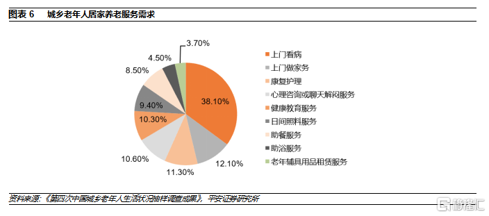 2)医疗保健型居家养老服务:主要服务内容包括输液治疗、上门检查、康养护理等。医院、护理机构等医疗资源紧张、收费较高,居家医疗保健服务降低治疗成本,未来需求广阔。