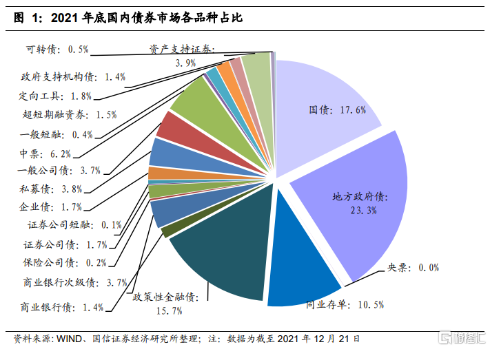 截至2021年12月21日,地方政府债总规模30.3万亿,是国内债券市场第一大品种,余额占比23.3%。