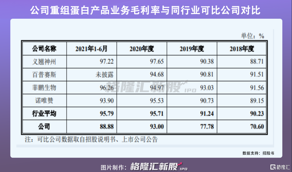 不过重组蛋白行业作为技术密集型行业,具有技术迭代迅速的特点,容易受行业技术变革的影响,这意味着,重组蛋白企业可能面临着无法快速跟随技术升级的挑战。报告期内,公司重组蛋白产品业务毛利率分别为70.60%、77.78%、93.00%、88.88%,低于同行业的平均值。