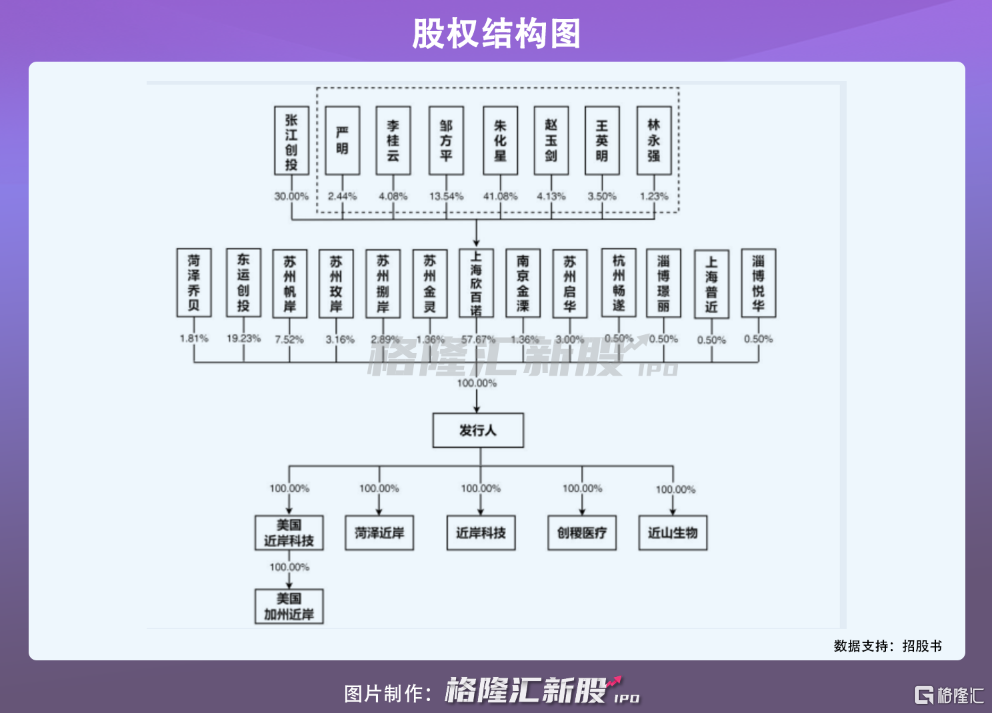 根据招股书,公司实际控制人为朱化星,其通过上海欣百诺、苏州帆岸、苏州捌岸、苏州玫岸间接持有公司 29.11%股份;朱化星通过与邹方平、赵玉剑、李桂云、王英明、林永强、严明签署一致行动协议,实际控制公司控股股东上海欣百诺,并通过担任苏州帆岸、苏州捌岸、苏州玫岸的执行事务合伙人,合计拥有公司 71.24%股份的表决权。