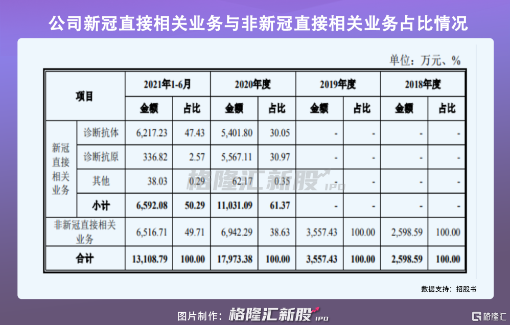 值得注意的是,新冠疫情以来,公司推出了一系列与新冠病毒相关的重组蛋白产品,相关产品被国内外客户大量采购,公司经营业绩迅速增长。从主营业务来看,其中2020年新冠直接相关收入占当期主营业务收入的比例为 61.37%。