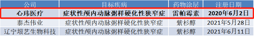 目前全球范围内还没有任何一款药物洗脱球囊导管产品上市,我国也仅有三款颅内药物洗脱球囊导管产品处于临床试验阶段,并且其中只有心玮医疗一家公司使用雷帕霉素涂层,疗效要好于紫杉醇涂层。在国外,归创通桥也于今年7月在FDA注册了雷帕霉素颅内药物洗脱球囊导管的临床试验,预计将于2023年完成,远慢于心玮医疗进度。