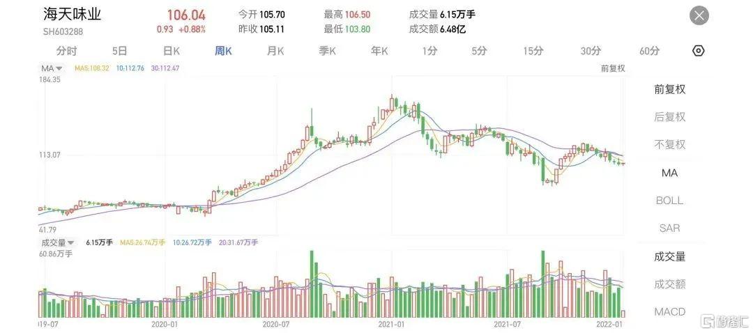 就拿海天味业来说,2021年其股价累计跌幅超过30%。