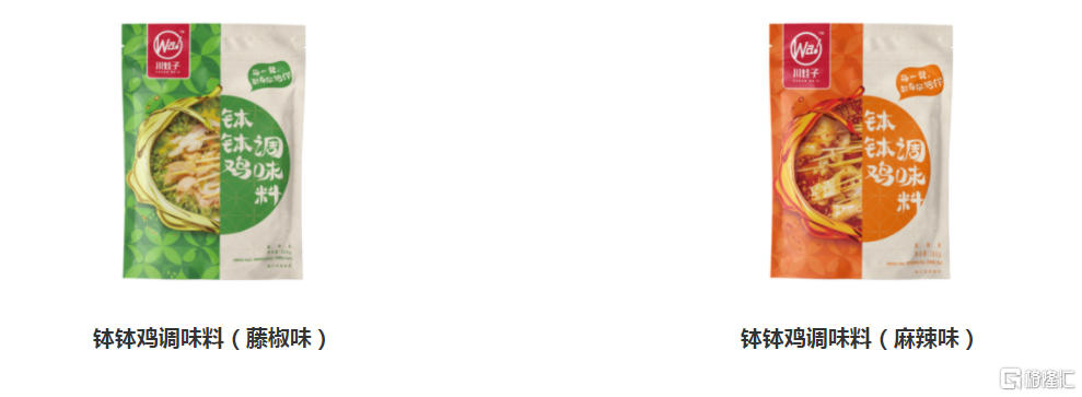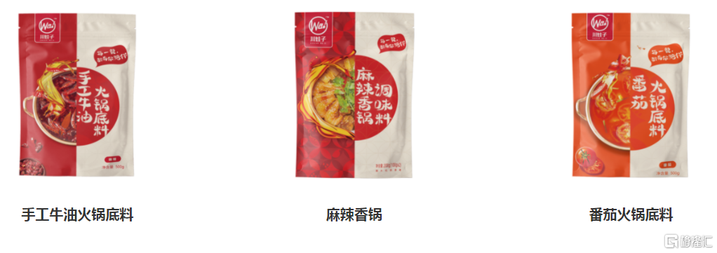 2020 年烧椒酱在李佳琦直播间创下了 3 分钟热销50万瓶的记录,作为爆品出了圈,打开了消费者认知度,目前川娃子旗下拥有拌饭酱、火锅底料、调味料和方便速食等产品系列。
