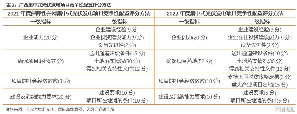 不同于2021年只能选择保障性并网或市场化并网其中一类,新版政策提出两类项目统一按竞争性配置评分办法进行评分,按建设指标取评分高的项目作为保障性并网项目,剩余的作为市场化并网项目。评分方法方面,一级指标均包含企业能力、确保项目落地、项目的社会经济效应、建设及消纳能力要求四项。其中项目的社会经济效应划分了“支持巩固脱贫攻坚成果(3分)”和“重大产业项目落地(15分)”两小项。加、扣分项增加了“对迎峰度夏期间和迎峰度冬期间保障电力供应安全贡献”、“企业投资建设集中式电化学储能电站”“集团公用火电2021年迎峰度夏期间非计划停运”等方面,引导各企业在用电高峰期积极保供,有助于改善用电紧张的问题。