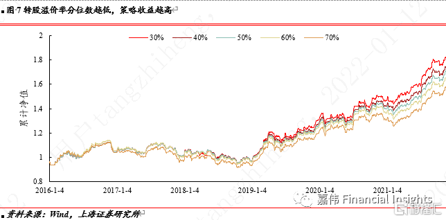 1.转股溢价率分位数。通过设置转股溢价率分位数,保留上一个月最后一个交易日的转股溢价率位于样本池前n%的转债,起到对低转股溢价率的限制作用。