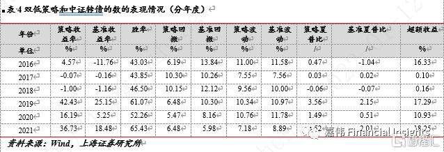 策略样本期为2016.01.04-2021.12.31,样本池剔除即将到期、触发强赎条件以及中途停牌、退市的转债。交易规则如下:在每月的第一个交易日进行调仓,等权重买入基于“双低规则”筛选得到的可转债。在未触发止盈止损条件下,统一在每月最后一个交易日卖出,中间不补仓。