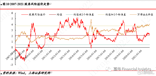为解决上述问题,我们引入风险溢价模型模型。风险溢价模型反映了权益市场和债券市场的风险收益性价比,一般采用指数估值的倒数减去5年期国债到期收益率来度量。风险溢价越高,表明股市相对债市更有吸引力;风险溢价越低,表明债市相对估值更有吸引力。