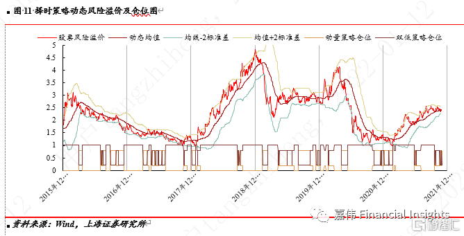 前述风险溢价示意图为静态模型,但现实世界中投资者不掌握未来数据,因此,我们需要构造动态的风险溢价模型,用当期的风险溢价指标为信号,预测下一期股市相对于债市的表现,据此对双低策略和动量策略分配仓位权重,以构建攻守兼备的择时策略。
