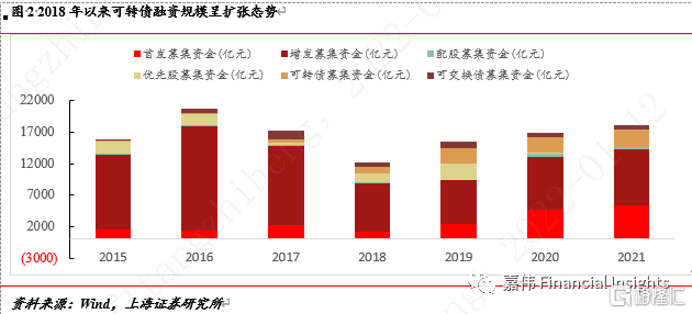转债扩容,存量规模扩大。自2016年以来,新发可转债融资规模从227亿上升到2021年的2734亿,相当于增长了11倍,成为我国资本市场直接融资的重要渠道之一。
