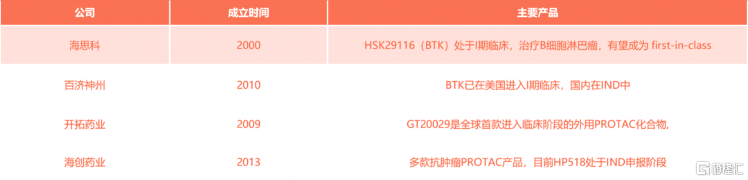 表2 国内企业PROTC药物生产情况