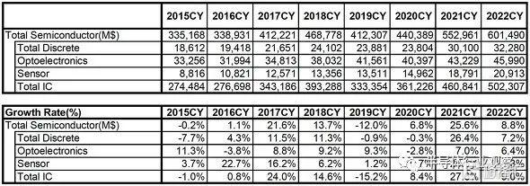 据预测,离散元件在2021年将同比增长 26.4%。从2021年1月至2021年10月的业绩来看,同比增长27.7%,并且几乎每个月都在持续增长20%以上。特别是由于汽车的电气化和工业设备的自动化,对电源产品的需求持续增长,如果每家公司都不能迅速开始大规模生产 300 毫米(12 英寸)晶圆生产线,则有可能会出现长期短缺。预计2022年同比增长8.8%,但笔者预测这个领域可能会有20%左右的增长。