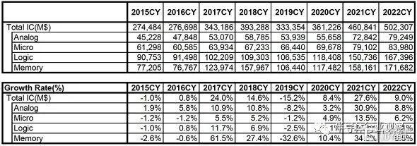 微型处理器市场预计同比增长13.5%。到2021年10月,同比增长14.1%,并继续保持相对持续增长。2022年MPU和MCU都有望实现两位数的增长,所以笔者预测整体增长有望超过10%。WSTS 6.2% 的增长预测可能过于保守。