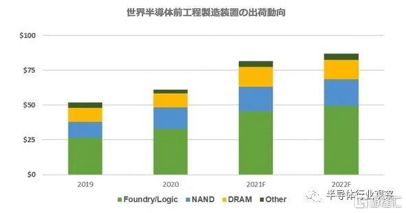 上图为全球半导体前端制造设备按领域出货趋势图。看这个,虽然市场在2020年和2021年有了明显的增长,但大部分都被找到了。