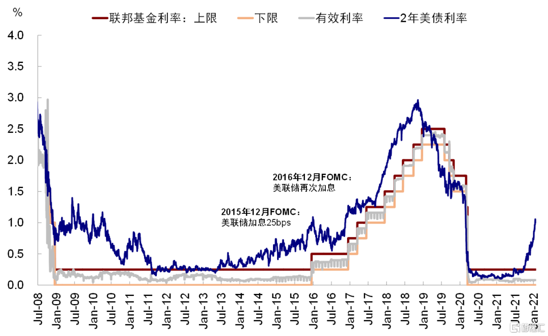 1月27日FOMC会议将是市场短期走向的关键验证点。解铃还须系铃人,抛开昨晚突发的地缘风险,担忧美联储过快收紧依然是近期市场波动和预期混乱的源头,所谓“缩表恐慌”(《“缩表恐慌”的前因、后果与历史经验》)。给定市场加息预期“步步紧逼”的背景下(当前利率期货隐含3月加息基本是铁板钉钉,甚至还有一次加息50bp的预期)、且3月之前没有其他会议,因此此次会议对于3月加息和后续紧缩路径的暗示对于锚定市场预期就将起到关键作用。如果预期兑现,我们预计可能仍会有阶段性扰动,但只要不超预期可能也就基本是一个预期兑现的过程,毕竟从估值和计入预期程度来看,都已经得到了一定的反应。反之,如果比市场当前担心的更加温和的话,那么将是一个明显鸽派的信号,不过结合目前情况来看,我们认为这一可能性也相对较小。