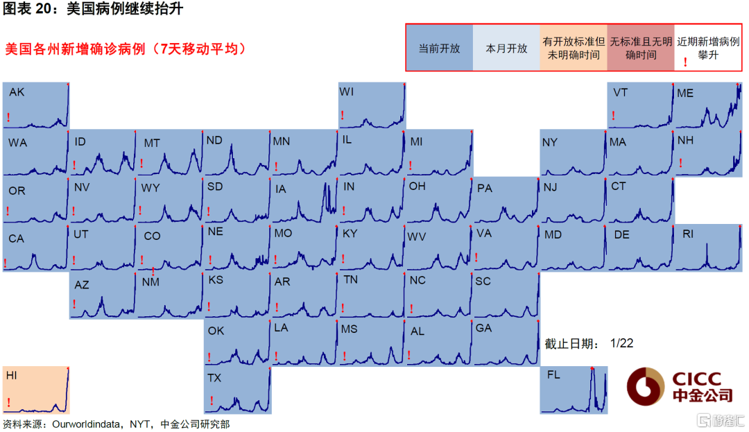 不过市场可能担心尽管筑顶但绝对水平依然处于高位,从英国、加拿大等经验看新增病例的降速和增速基本是对称的,因此1月底见顶后2月底新增确诊也有可能回落到较低水平。如果这一情形出现,对后续市场走势、乃至市场货币政策紧缩节奏预期也将有一定影响。