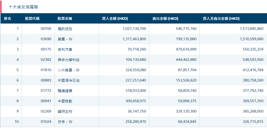 北水净买入最多的个股是美团-W(03690)、腾讯(00700)、赣锋锂业(01772)。北水净卖出最多的个股是中国海外发展(00688)、舜宇光学(02382)、李宁(02331)。