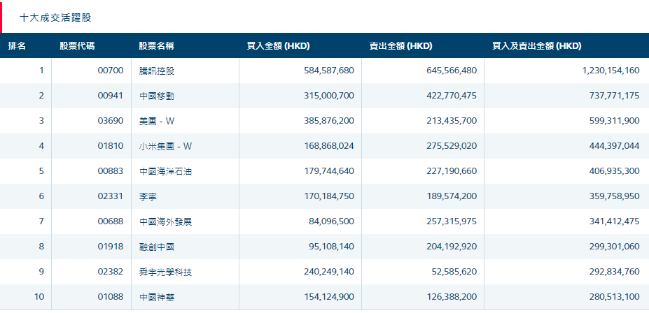 此外,小米集团-W(01810)、中海油(00883)分别获净买入1.3亿、2629万港元。而李宁(02331)遭净卖出1938万港元。