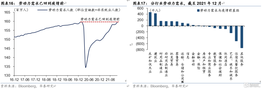 劳动力市场;O型毒株有限扰动,需求已回到疫情前,供给仍存瓶颈