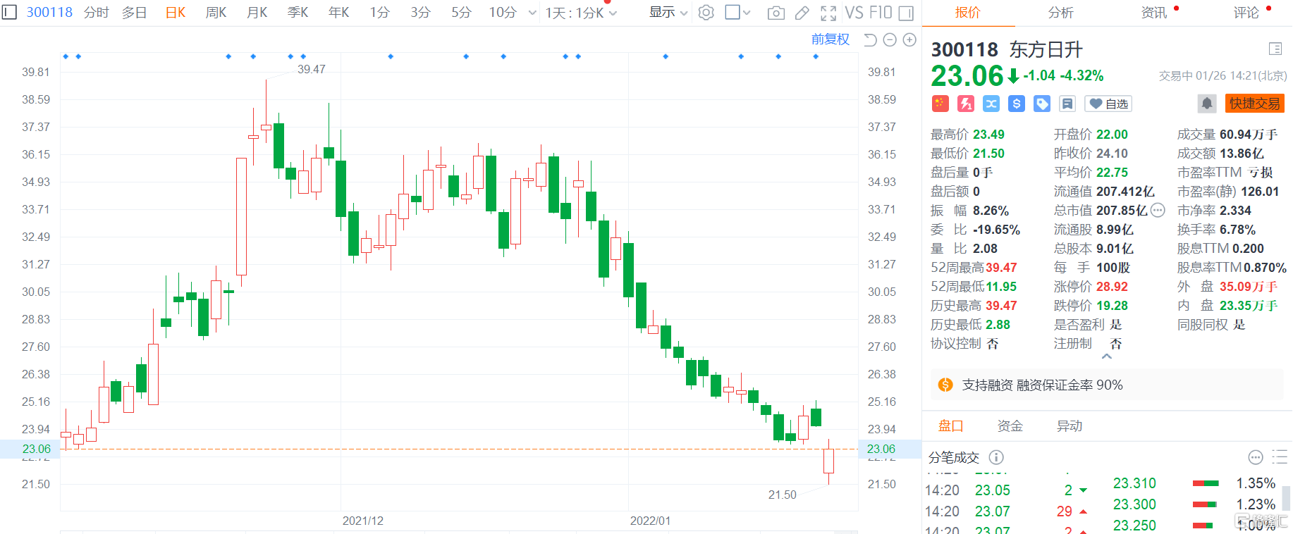 A股异动丨东方日升(300118.SZ)跌逾4% 2021年度预亏3500万–5250万元