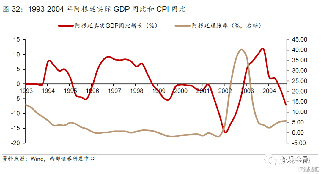 4)2001年阿根廷危机。外因:1999年6月~2000年5月处于美联储加息周期,美元升值。内因:外债庞大。后果:经济滞胀,汇率贬值,股市暴跌。