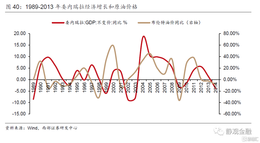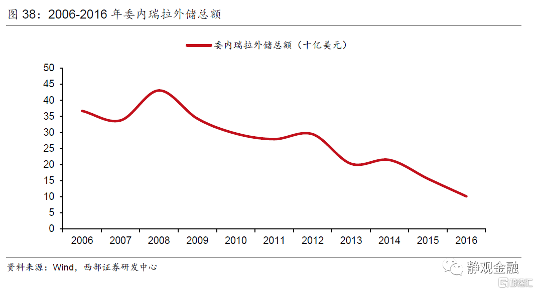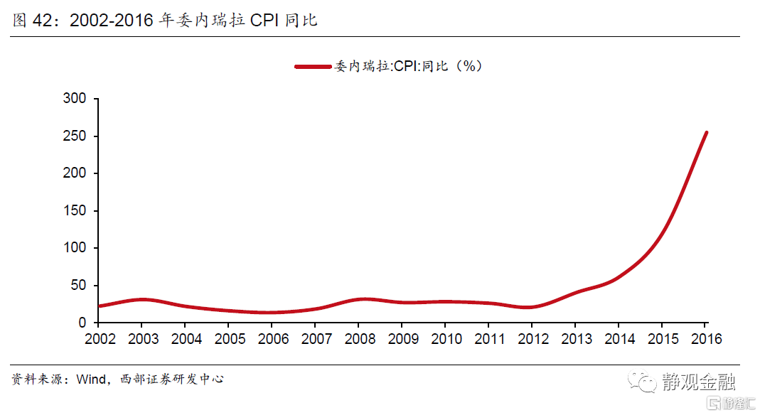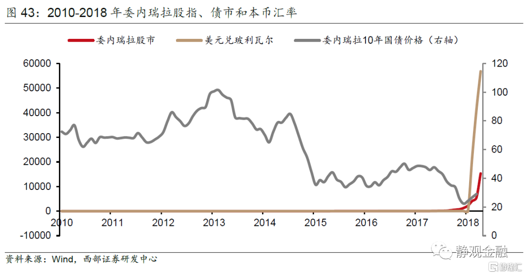 由于原油是委内瑞拉和俄罗斯的主要经济来源,因此不仅油价萎靡对上述两国、尤其是委内瑞拉形成了经济冲击,同时美元升值又压迫了其本币,形成了“油价下行→经济疲软,外汇储备受损→汇率(大幅)贬值→恶性输入型通胀+国别信用风险增加→股债汇三杀”的局面。