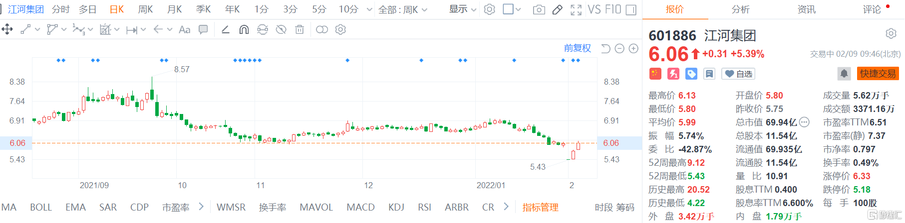 格隆汇2月9日丨江河集团(601886.SH)股价继续回升,现报6.06元,涨幅5.39%,总市值69.9亿。公司全资子公司近日收到北京建工集团有限责任公司发来的北京工人体育场改造复建政府和社会资本合作(PPP)项目屋面工程中标通知书,中标金额为人民币2.78亿元,约占公司2020年度营业收入的1.54%。