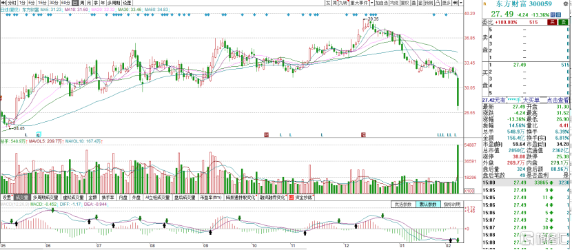 个股方面,东方财富今日暴跌,最低报26.9元/股,市值最高蒸发461亿,最终收跌13.36%报27.49元/股,总市值2850亿元。有分析人士认为,东方财富杀跌主要有三个原因:一是今天券商板块整体波动;二是上周五晚上,公司发布可转债最后一次赎回提示性公告,可能面临转债抛压;三是周末关于新发基金遇冷新闻影响。