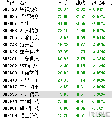 数字货币板块下挫,翠微股份跌停,华扬联众跌超9%,京北方跌近8%,四方精创、天喻信息跌超5%,新开普、雄安科技、信安世纪跌超4%。