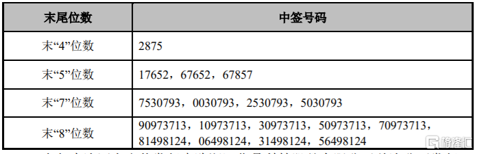 首次公开发行股票并在创业板上市网上定价发行摇号中签结果公告股股票的投资者持有的申购配号尾数与上述号码相同的,则为中签号码。中签号码共有3.8013万个,每个中签号码可认购500股浙江华是科技股份有限公司A股股票。