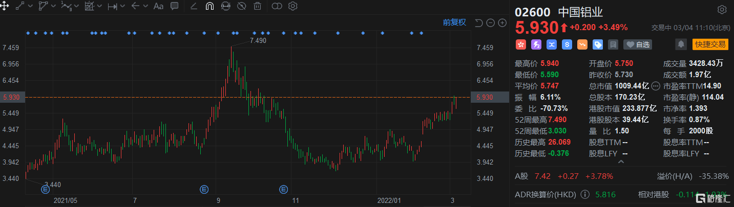 港股异动 | 中国铝业(2600.HK)涨3.49% 与蔚来签署战略合作协议