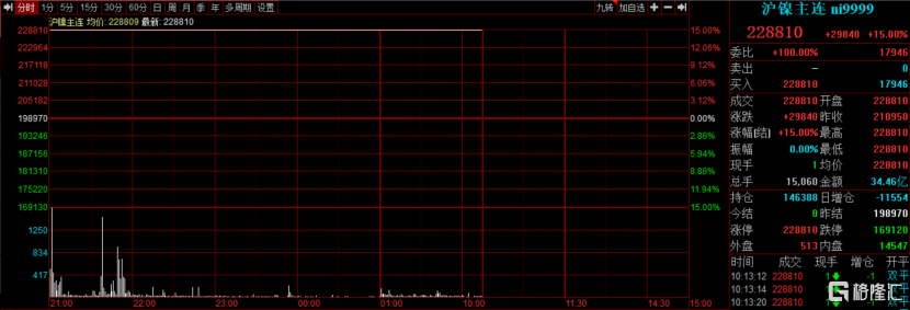 今日早盘,沪镍期货再次一字涨停开盘,主力2204合约涨15%,现报228810元/吨。有投资者惊叹道,一众“妖镍”复出。