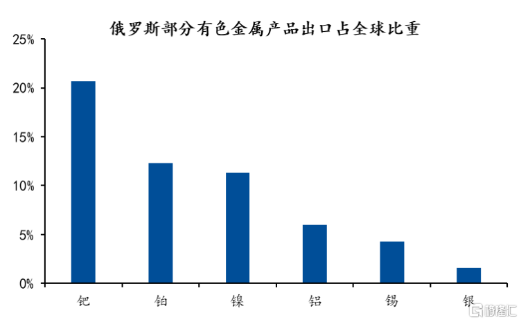 (数据来源国泰证券,俄罗斯部分有色金属产品出口占全球比重)