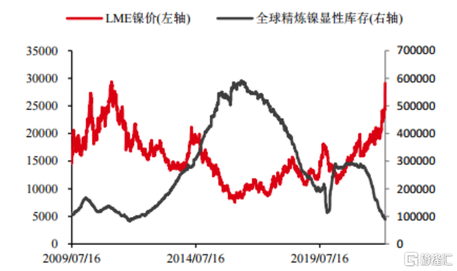 (数据来源华泰期货,全球精炼镍显性库存)