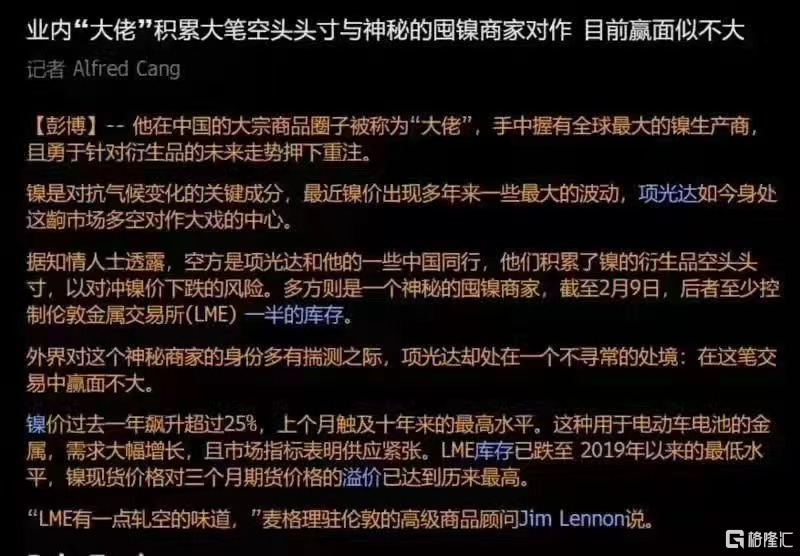 除了供需紧张之外,传闻青山伦镍上被瑞士逼空,资本抢镍矿已白热化。