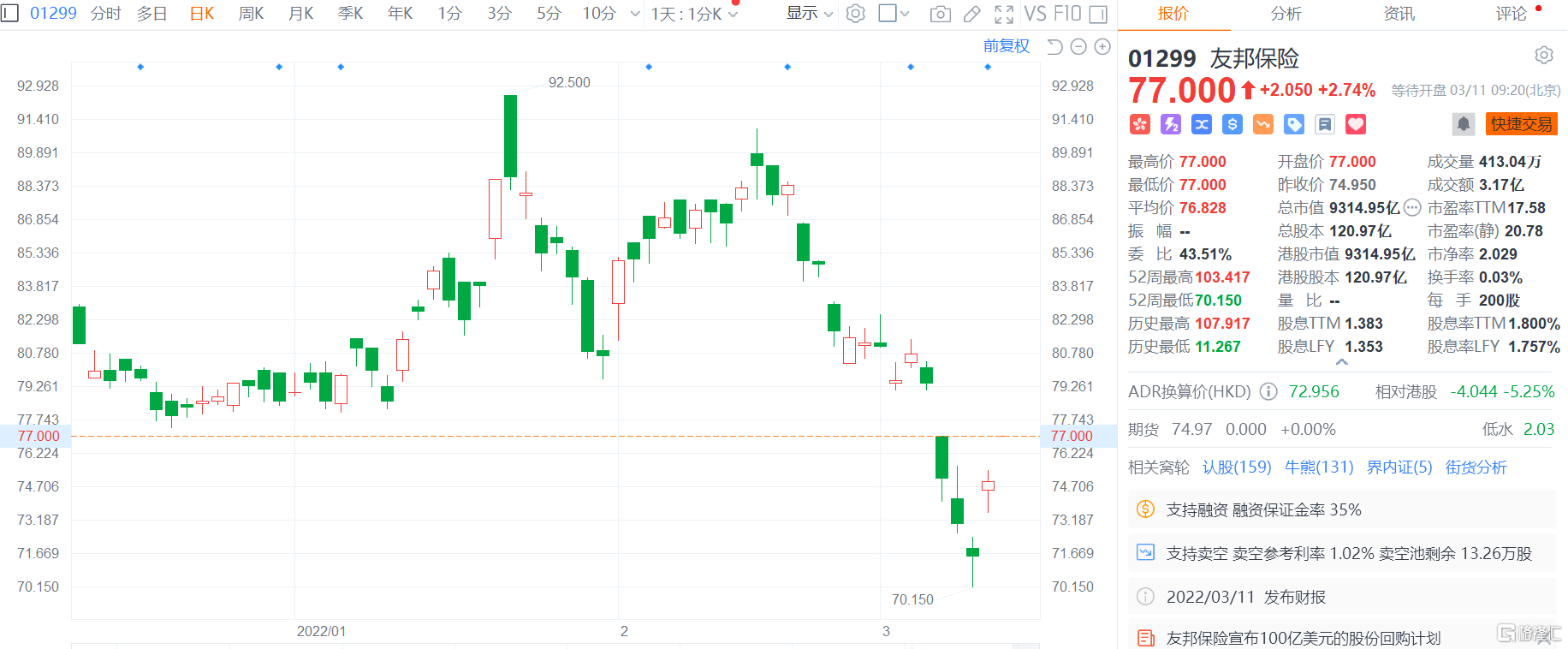 港股异动丨友邦(01299.HK)高开近3% 去年新业务价值按固定汇率计增18%胜预期