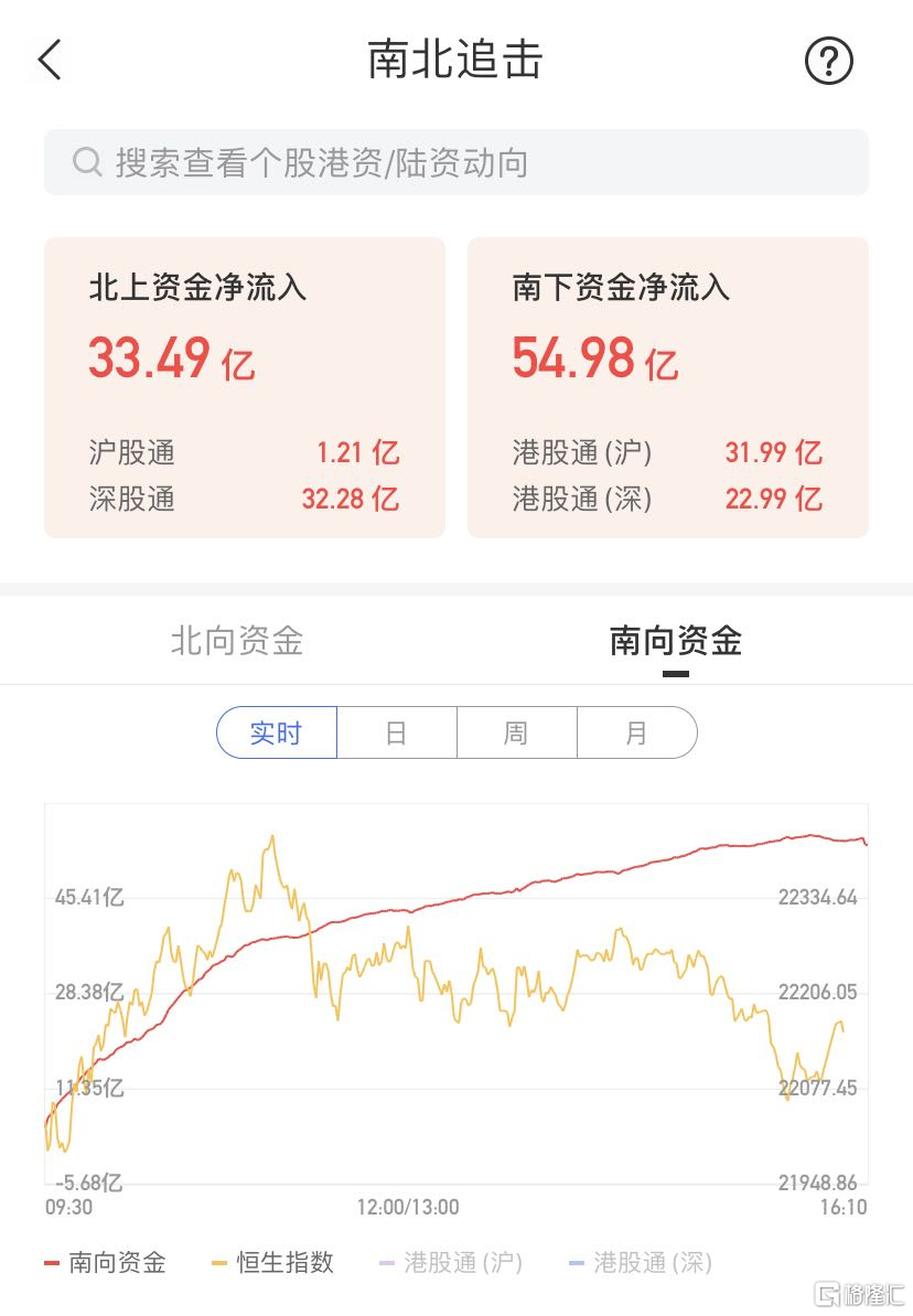 今日,南向资金净流入54.98亿港元,其中港股通(沪)净流入31.99亿港元,港股通(深)净流入22.99亿港元。