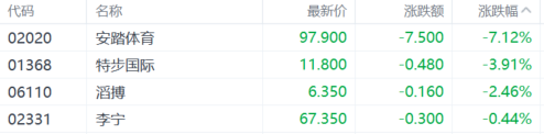 体育用品概念跌幅居前。安踏体育跌7.12%,特步国际跌超3%,滔博跌超2%。国盛证券表示,运动赛道短期有波动,中长期仍快速成长。1)短期:据跟踪,1-2月国内运动品牌商流水快速增长,未来3-4 月预计随着高基数到来增速会有一定压力。2)中长期:国内运动鞋服市场仍处于快速增长阶段。