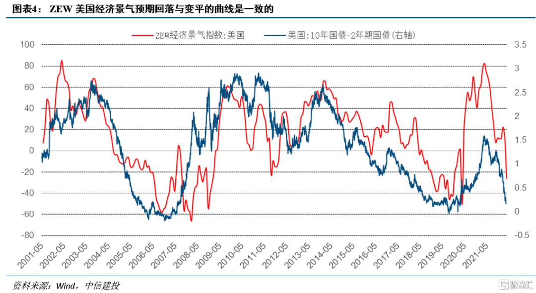 理论上缩表从债券供给层面抬升长端利率,但收益率曲线是加息预期与经济预期相互作用后的结果,债券供需是动态变化的。如果看2018年缩表,缩表并未改变收益率曲线继续平坦,原因在于经济预期跟不上紧缩的力度,美国PMI因为特朗普减税刺激也只是在高位横盘,最终无法承受4次加息与缩表的冲击。而如果看ZEW经济景气预期,在2018年持续呈现回落趋势,与变平的曲线是一致的。