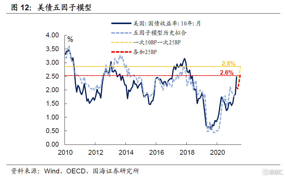根据我们先前提出的“五因子模型”,10年期美债利率可能会在今年年中达到2.60%至2.80%水平,除此之外,接下来美联储的具体“缩表路径”可能也会对美债利率产生额外推动作用。因此,我们认为目前美债利率仍有进一步上行空间。