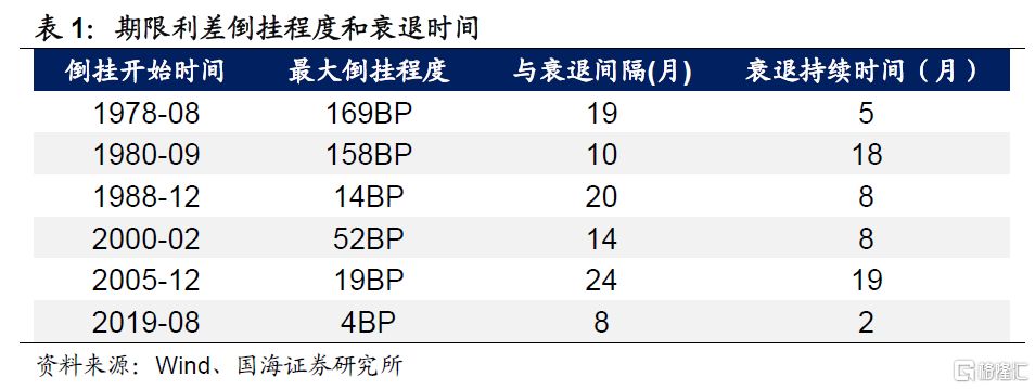 1970年以来曾经出现过7次期限利差倒挂现象,均处于美联储加息末期,其中有6次,在之后的2年内出现了不同程度的衰退。整体来看: