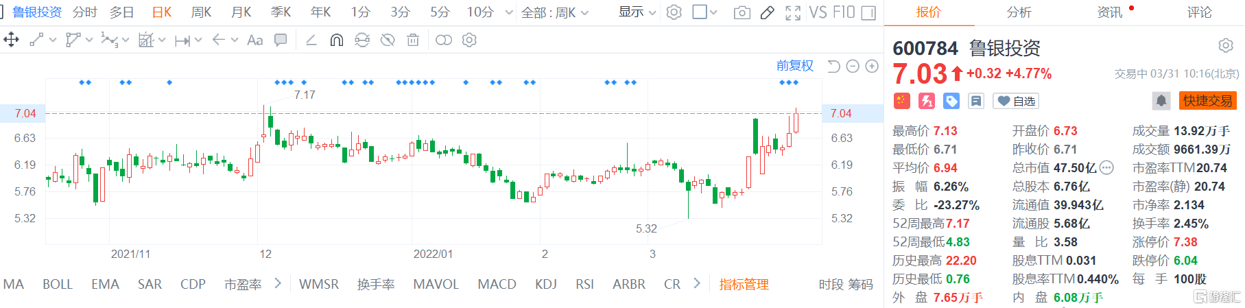 A股异动 | 鲁银投资(600784.SH)涨4.8% 料一季度净利同比增131%至177%