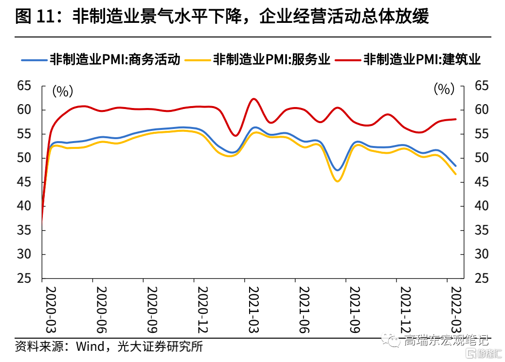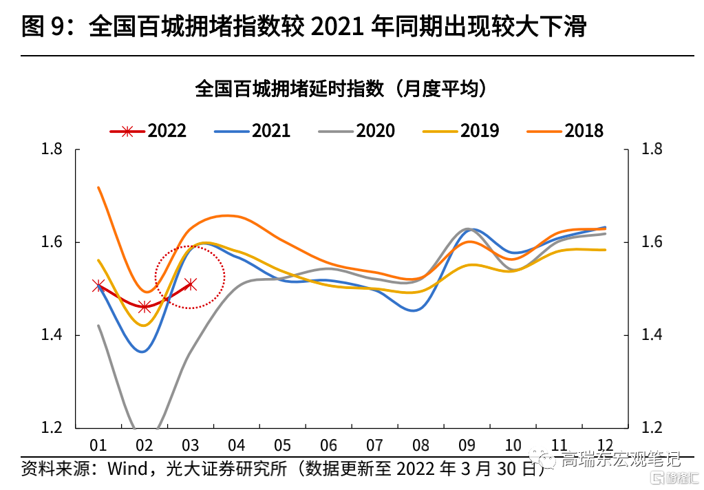 3月服务业PMI为46.7%,比上月回落3.8个百分点,比上年同期回落8.5个百分点,服务业市场活动放缓。从行业情况看,接触性聚集性行业受疫情影响较大,业务活动明显减少,全国百城拥堵指数、城市地铁客运量均出现较大下滑。目前上海、吉林的疫情仍未得到明显控制,且已波及到全国多个省份,疫情形势严峻。