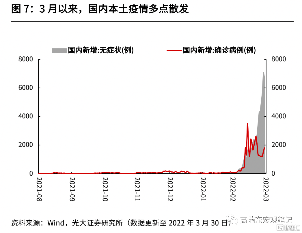 2022年3月以来,奥密克戎在国内本土蔓延加剧,国内多个省份的疫情反弹明显。2022年3月1日至3月30日,全国累计新增本土无症状6.2万例,新增本土确诊病例3.8万例。