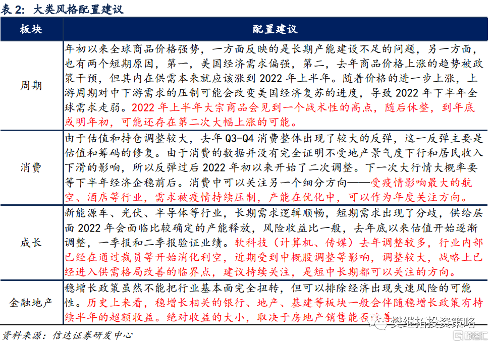 行業配置建議:近期疫情的衝擊,一方面強化了穩增長的政策,另一方面讓部分投資者開始佈局疫情後的基本面環比修復。前一個邏輯偏長期,可能能持續比較久,可以做長期局部。後一個邏輯偏博弈,考慮到這一次環比經濟的衝擊比2020年Q1小,所以疫情後環比修復的力度也會小很多,只能當成反彈來做。