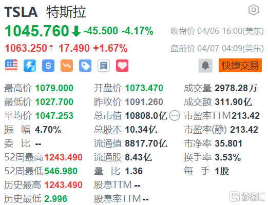 格隆汇4月7日丨特斯拉(TSLA.US)盘前涨1.67%,报1063.25美元。特斯拉美国官网显示,Model3长续航版上调1500美元至5.599万美元;高性能版上调1000美元至6.299美元。