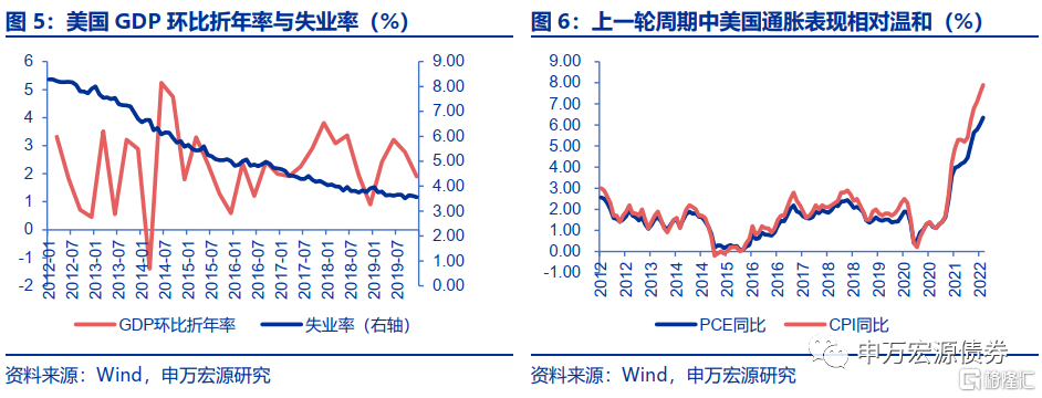 (3)经济增长水平不同:从各个指标来看,当前美国经济表现较上一轮紧缩期间表现更为强劲。