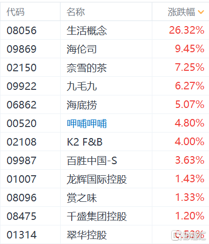 格隆汇4月20日丨港股餐饮股中,海伦司涨超9%,奈雪的茶涨超7%,九毛九涨超6%,海底捞涨5%,呷哺呷哺涨近5%,百胜中国涨近4%;旅游股中,同程旅行涨近6%,途屹控股涨超2%,香港中旅和携程集团涨超1%;航空股中,美兰空港涨近3%,中国国航涨超1%。中国疾控中心流行病学首席专家吴尊友称,我们在思想上要做好与新冠长期斗争的准备;上海称保障推动长三角全产业链式协同复工复产;另外,香港4月21日放宽部分社交距离措施。