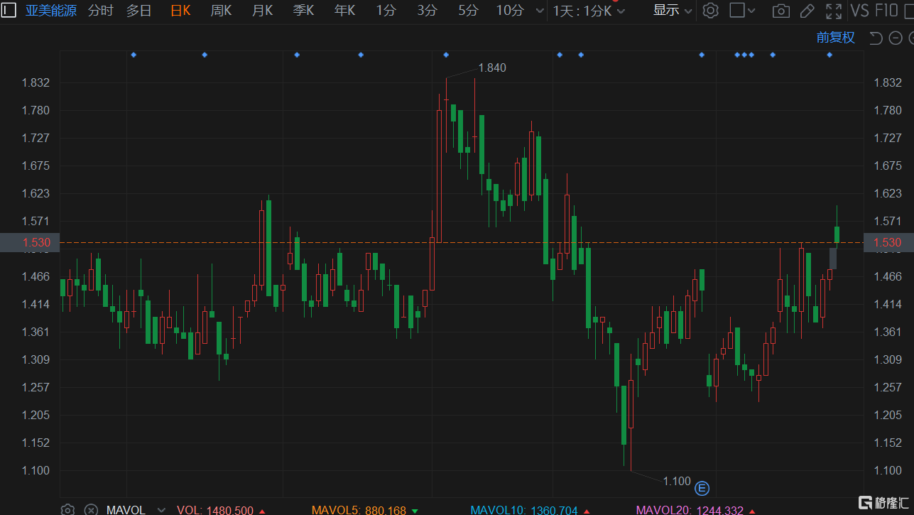 格隆汇4月29日丨亚美能源(2686.HK)盘初一度拉升涨超7%,现报1.54港元涨4%,总市值52亿港元。公司昨晚公告,截至今年3月31日止三个月未经审计营业总收入按年增长约108%至约7.34亿元人民币(下同) , 归属于公司所有者净利润按年增长约91%至约3.76亿元。据悉,该集团未经审计总负债约15.41亿元,其中应付账款约6.47亿元。